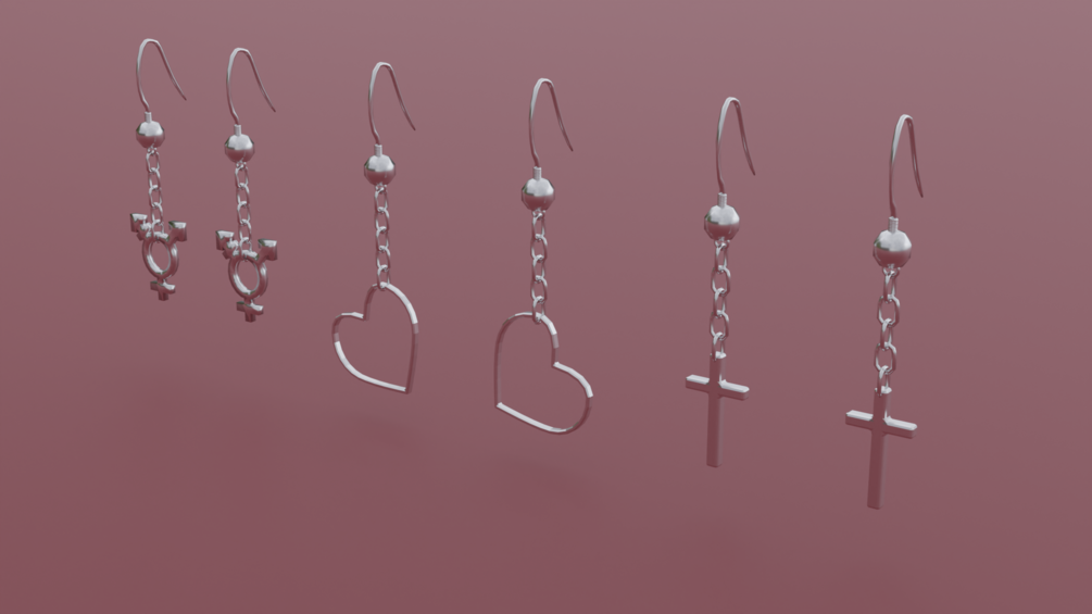 Each earring is around 2-2.5k polygons and has 7 bones. Includes left and right earrings rigged to individual armatures.
